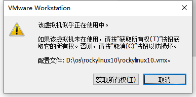 该虚拟机似乎正在使用中,怎么解决 by vpsokPosted on2026年2月8日 该虚拟机似乎正在使用中,如果该虚拟机未在使用,请按“获取所有权(T)” 解决方法 进入对应的目录删除 .lck 结尾的文件或者文件夹 发现可以正常使用了